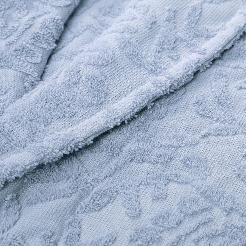 Халат махровый подойдёт для использования после бани или душа. Он изготовлен из 100% хлопка и отличается мягкой текстурой. Ткань хорошо впитывает воду. Махровая ткань плотностью 300 г/кв.м приятна на ощупь и отлично сохраняет тепло.