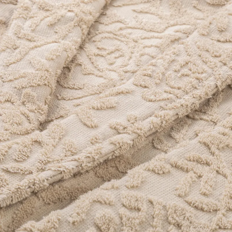 Халат махровый подойдёт для использования после бани или душа. Он изготовлен из 100% хлопка и отличается мягкой текстурой. Ткань хорошо впитывает воду. Махровая ткань плотностью 300 г/кв.м приятна на ощупь и отлично сохраняет тепло.