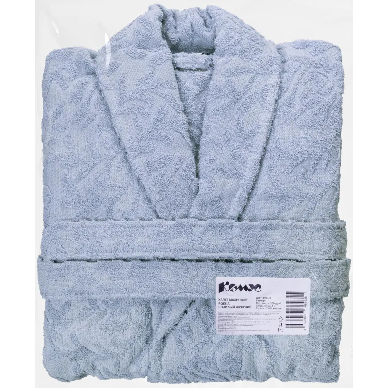 Халат махровый подойдёт для использования после бани или душа. Он изготовлен из 100% хлопка и отличается мягкой текстурой. Ткань хорошо впитывает воду. Махровая ткань плотностью 300 г/кв.м приятна на ощупь и отлично сохраняет тепло.