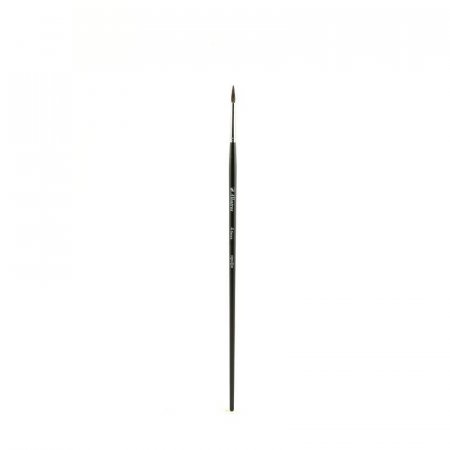 Художественная круглая кисть из натурального волоса белки. Кисть Обойма цельнотянутая алюминиевая. Удлиненная деревянная ручка покрыта черной эмалью. Размер кисти - №4.