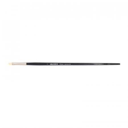 Кисть из синтетики Tician, плоская № 7. Кисть из серии Tician изготовлена из жесткой синтетики белого цвета имитирующей щетину. Этот ворс отлично подходит для густых красок таких как масло, акрил, гуашь, темпера. Кисть выполнена в благородной цветовой гамме. Матовая втулка с теплым металлическим оттенком, черный лак и лаконичная маркировка делают эту кисть не только надежным художественным инструментом, но и красивым аксессуаром. Кисть держит свою форму даже при частом использовании, ворс прочно закреплен, а втулка не расшатывается со временем. Ручка кисти длинная — 25 см. Длина ворса (выставка) короткая. Номер кисти соответствует диаметру в мм.