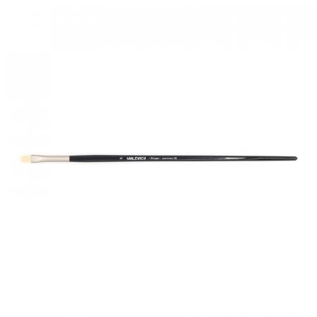 Кисть из синтетики Tician, плоская № 8. Кисть из серии Tician изготовлена из жесткой синтетики белого цвета имитирующей щетину. Этот ворс отлично подходит для густых красок таких как масло, акрил, гуашь, темпера. Кисть выполнена в благородной цветовой гамме. Матовая втулка с теплым металлическим оттенком, черный лак и лаконичная маркировка делают эту кисть не только надежным художественным инструментом, но и красивым аксессуаром. Кисть держит свою форму даже при частом использовании, ворс прочно закреплен, а втулка не расшатывается со временем. Ручка кисти длинная — 25 см. Длина ворса (выставка) короткая. Номер кисти соответствует диаметру в мм.
