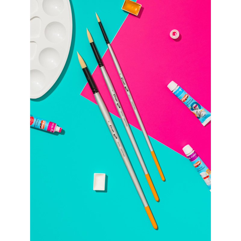 Универсальность: кисть Комус Арт подходит для работы с разными видами красок — акрилом, маслом, темперой, гуашью.