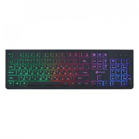 У клавиатуры OKLICK 440ML предусмотрена подсветка клавиш. Такой функционал стал уже стандартным для качественных моделей, однако от этого не потерял свое удобство. Если вы еще не изучили раскладку, то подсветка поможет чувствовать себя удобно в темноте или в полумраке. Сама по себе клавиатура тонкая и легкая.
