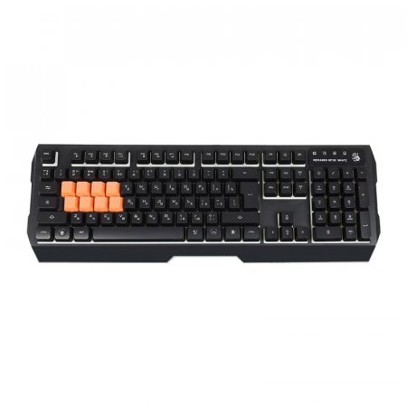 Клавиатура A4 Bloody B188, USB, черный Геймерская яркая клавиатура модели A4 Bloody B188 компактна, но оснащена всеми необходимыми опциями и возможностями для успешной игры. Эта клавиатура в черном традиционном корпусе и классической формы имеет необычный яркий дизайн и придется по вкусу любителям компьютерных игр. Клавиатура оборудована удобной подсветкой клавиш для комфортной игры даже в темном помещении. Такая подсветка смотрится удивительно эффектно и станет интересным дополнением оформления компьютерного стола. Клавиатура A4 Bloody B188 подключается к вашему ПК или ноутбуку посредством кабеля через стандартный порт USB, что удобно и позволяет подключать клавиатуру данной модели к практически любым гаджетам. Кроме того, эта клавиатура совместима с абсолютно любыми операционными системами. Удобно также наличие мультимедийных и специальных клавиш