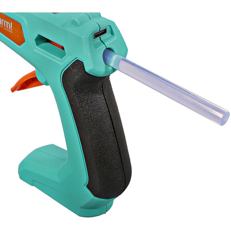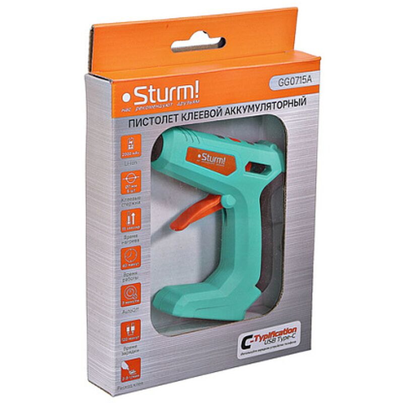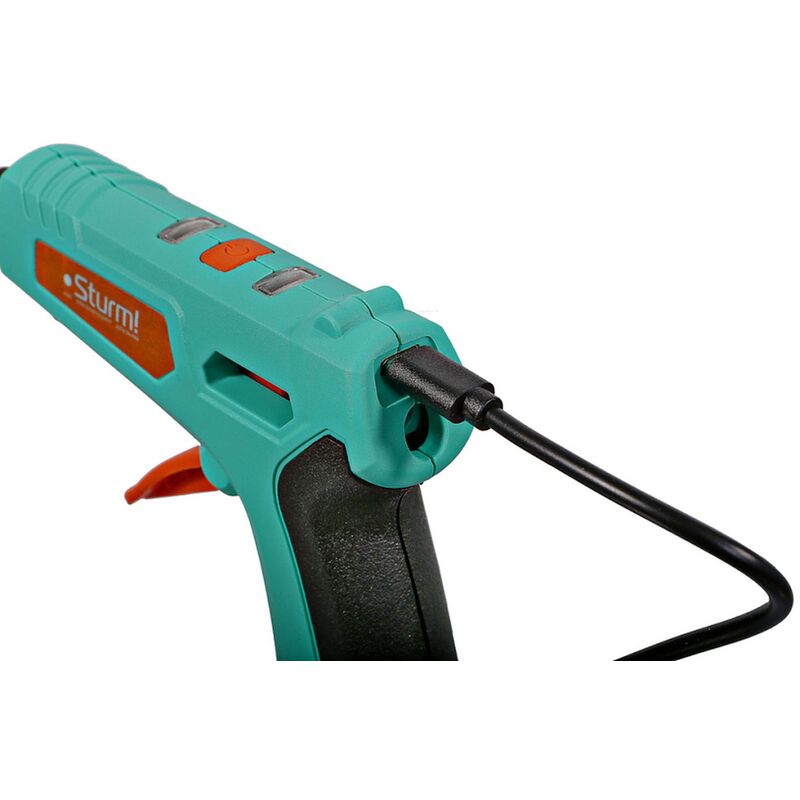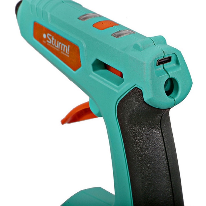 Пистолет клеевой аккумуляторный Sturm GG0715A не требует подключения к электрической сети, позволяя пользователю не быть привязанным к определенному месту работы, повышая мобильность действий. Современный порт USB-C поддерживает технологию быстрой зарядки, что позволяет скорее заряжать аккумулятор устройства и сократить время ожидания перед использованием. Для подзарядки аккумуляторной батареи подойдет любой аналогичный кабель USB Type C от стороннего устройства, что исключает необходимость хранить индивидуальный кабель питания.