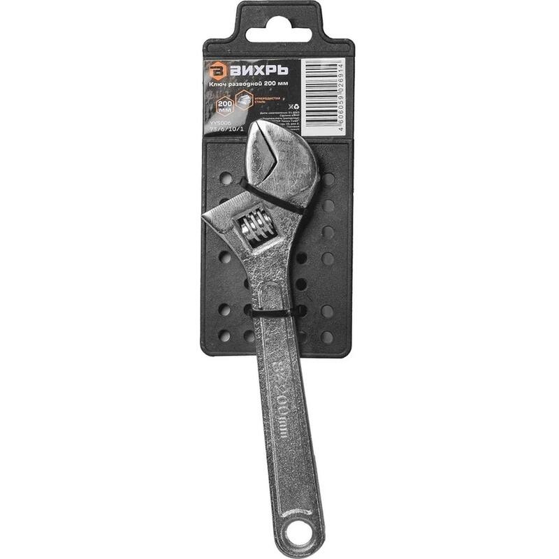 Ключ разводной Вихрь 200 мм (73/6/10/1) — ручной инструмент, который используется для работы с трубами, фитингами и крепежом различных диаметров. Он позволяет быстро и легко регулировать расстояние между губками. Ключ оснащен шкалой для подбора размера, максимальное расстояние между губками 24 мм.