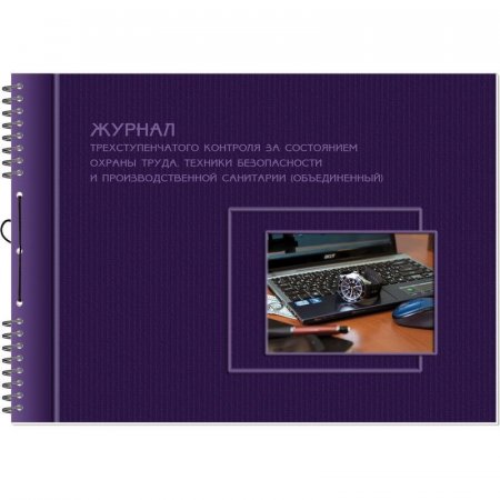 Журнал формата А4 (горизонтальный), 50 листов, блок печатный, офсет 60 г/кв.м, обложка — мелованный картон, УФ-лакирование, крепление на металлическом гребне, жесткая подложка из переплетного картона, перфорация и шнуровка. Трехступенчатый контроль за состоянием условий труда на производственных участках, цехах и в целом на предприятии производится: