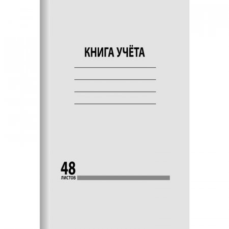 Бухгалтерская книга учета (формат А4). Обложка изготовлена из мелованного картона белого цвета плотностью 190 г/кв.м. Внутренний блок — офсетная бумага, 48 листов в клетку. Способ крепления — скрепки.