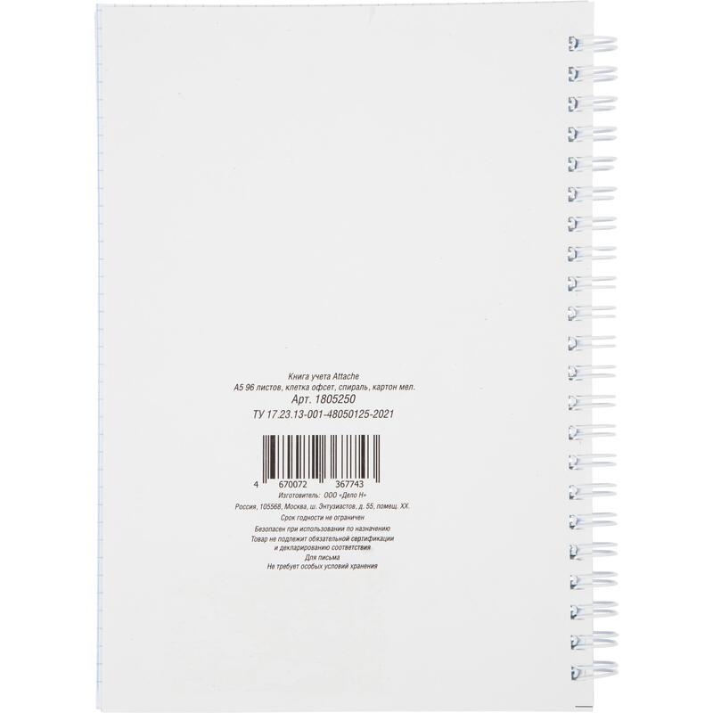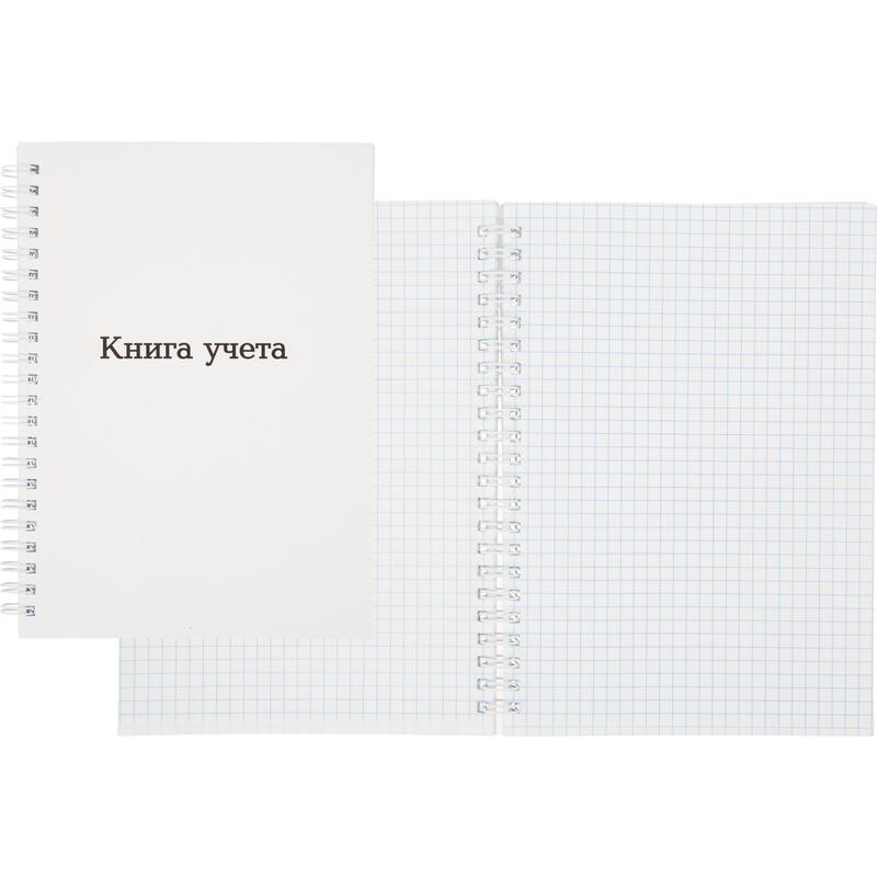 Книга учета А5 формата (усеченный, размер 200×148) изготовлена из мелованного картона 230 г/кв.м 96 листов, внутренний блок офсет 100% белизна 60 г/кв.м, линовка клетка на спирали. Предназначена для записи. Упакована в гофрокороб по 40 шт.