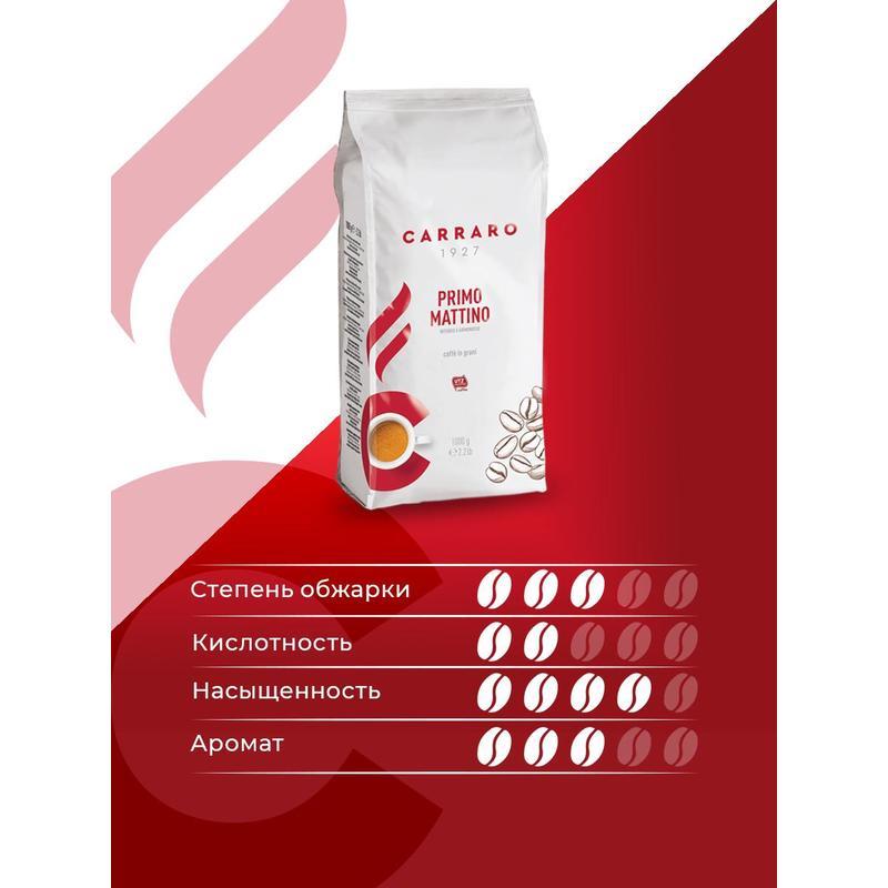 Кофе Carraro Primo Mattino в зернах 1000 г. — настоящий традиционный крепкий итальянский кофе, насыщенная консистенция и аромат которого является результатом создания смеси из лучших зерен Арабики и Робусты из разных стран. Степень обжарки: средняя. Вид кофе: в зернах. Сорт зерна: 70% арабика, 30% робуста. Способ приготовления: в чашке, в турке, во френч-прессе, в кофеварке капельного типа, в автоматических кофемашинах. Вес: 1000 г. Тип упаковки: вакуумный пакет. Условия хранения: плотно закрытый пакет хранить в сухом прохладном месте. Страна производства: Италия.