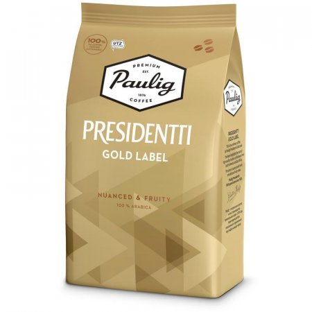 Paulig Presidentti Gold Label — уникальный кофе, приготовленный из смеси редких зерен 100% арабики. Тщательно отобранные кофейные зерна из Папуа — Новая Гвинея дарят напитку бархатистый вкус. Благодаря легкой обжарке достигается богатый, неповторимый аромат. Вкус Paulig Presidentti Gold Label мягкий, с легкими цветочно-фруктовыми нотками.