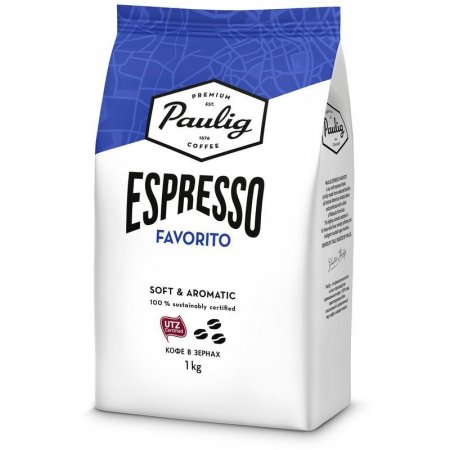 Кофе в зернах Paulig Espresso Favorito темной обжарки состоит из сладкой бразильской, мягкой никарагуанской и ароматной колумбийской арабики, а также арабики из Гватемалы с ореховыми нотками. Бразильская робуста сорта Кониллон придает кофе крепость и насыщенность. Во время варки кофе образуется густая пенка. Подходит как для приготовления в кофеварке или турке, так и для кофемашины. В упаковке 1 кг зернового кофе Paulig.