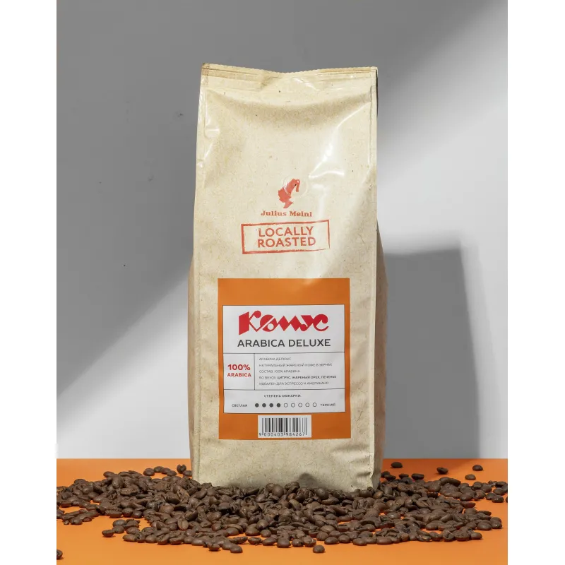Кофе Julius Meinl Arabica Deluxe — это зерна 100% арабики из Бразилии с восхитительными нотами цитруса, печенья и жареного ореха. Благодаря средней обжарке, кофе обладает сбалансированным вкусом с умеренной сладостью, средней кислотностью и приятной благородной горчинкой.Arabica Deluxe идеально подходит для приготовления кофе не только классическими способами, но и альтернативными, например, в воронке, кемексе, аэропрессе с пропорцией 15г на 250мл воды. Вес: 1000 г.Срок годности: 18 месяцев.