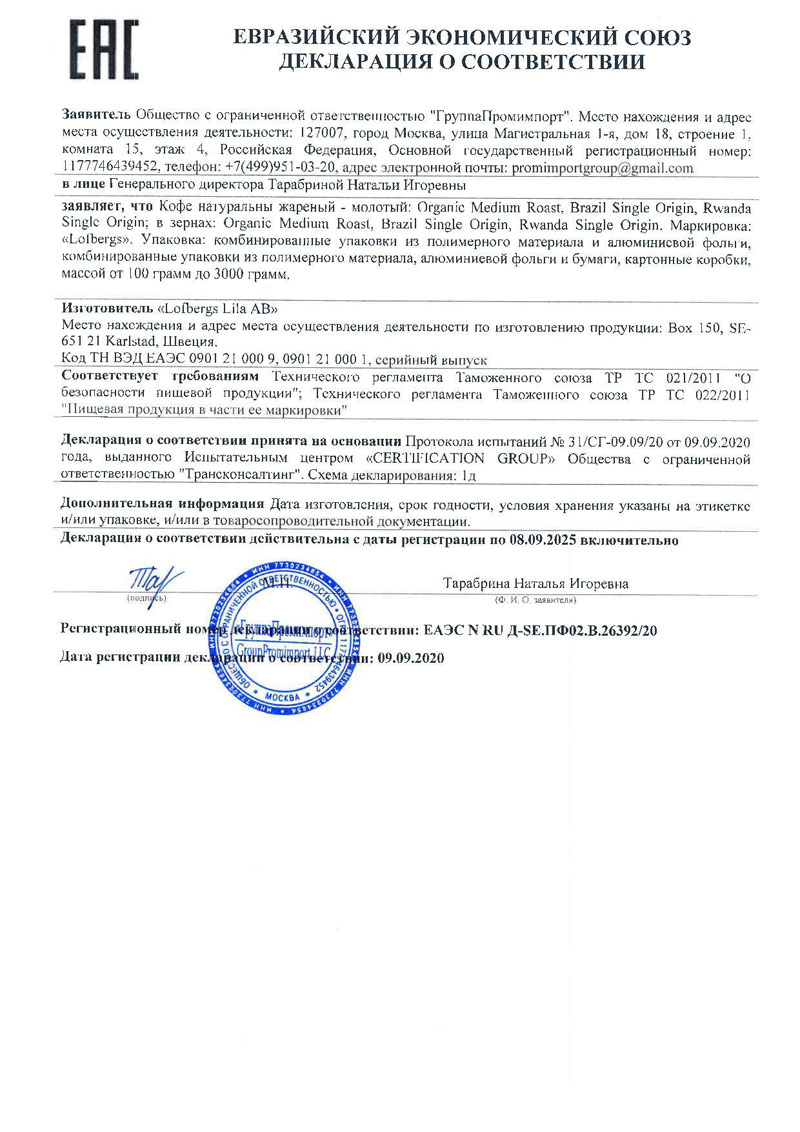 Сертификат соответствия |