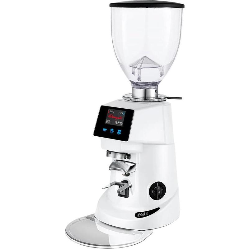 Кофемолка Fiorenzato F 64 E белая используется в кофейнях, барах, ресторанах, офисах и в домашних условиях для получения молотого кофе из зерен. Модель оснащена сенсорным дисплеем с технологией CapSense, микрометрической регулировкой помола с помощью зажимного кольца, системой порционной дозировки с точностью до секунд, плоскими жерновами и регулируемой вилкой-подставкой для портафильтра.