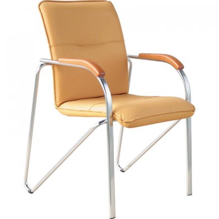 Конференц-кресло Samba. Обивка из искусственной кожи. Кресло на металлическом хромированном каркасе для посетителей. Подлокотники декорированы деревянными накладками.