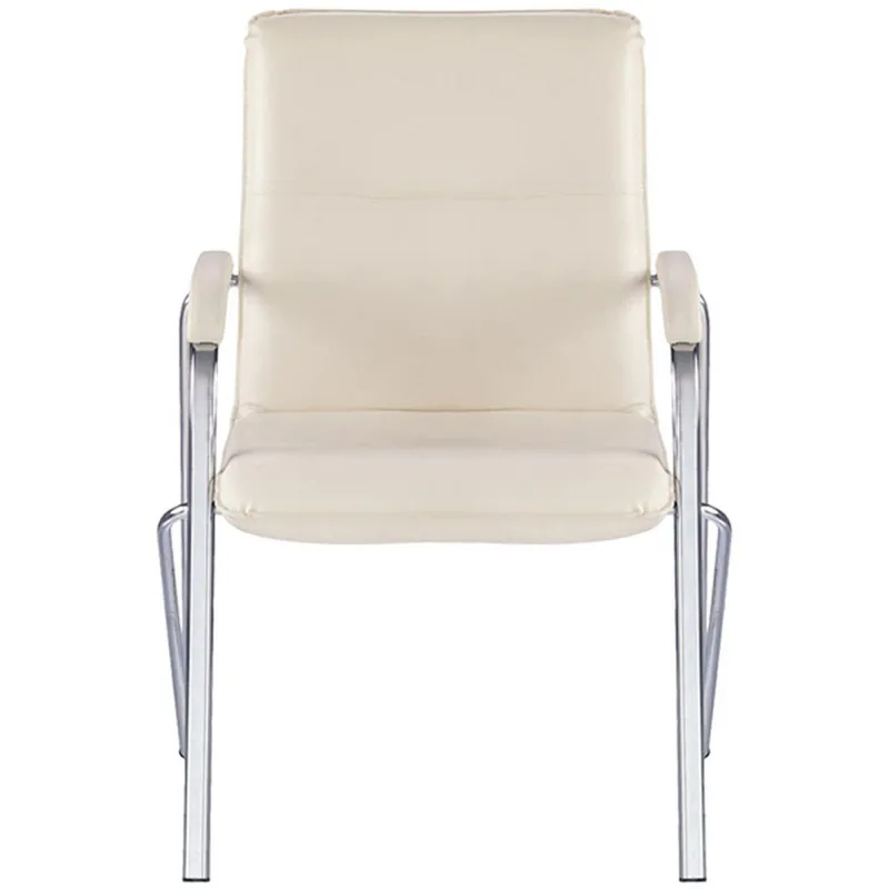 Конференц-кресло на металлическом хромированном каркасе. Материал обивки — искусственная кожа. Металлические подлокотники с накладками из искусственной кожи. Кресло подходит для благоустройства как офисных помещений, так и домашнего интерьера.
