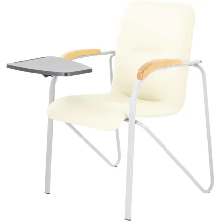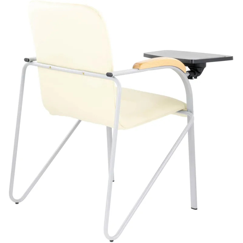 Конференц-кресло для офиса и дома. Необычная форма металлического каркаса и деревянные накладки на подлокотниках придают креслу современный вид. К креслу прилагается поворотный столик, выполненный из пластика. Модель отлично подойдет для конференц-залов, переговорных, актовых залов.