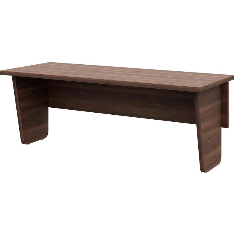 Внимание! Пожалуйста, проверяйте цвет изделия до начала сборки! Цвет на изображении товара в интернет-магазине или в печатном каталоге может отличаться от оригинала из-за особенностей цветопередачи. Модуль стола для заседаний. Столешница модуля стола выполнена из ЛДСП толщиной 38 мм в цвете орех бакаут и облицована кромкой ABS-пластик толщиной 2 мм. Опора (каркас) модуля имеет неправильную трапециевидную форму и выполнена из ЛДСП толщиной 38 мм с нанесением кромки ABS-пластик толщиной 2 мм. Углы в нижней части опоры скруглены. Опора имеет регулировку по высоте для компенсации неровностей пола. Модуль стола не используется, как самостоятельный элемент, только как часть для формирования переговорного стола.