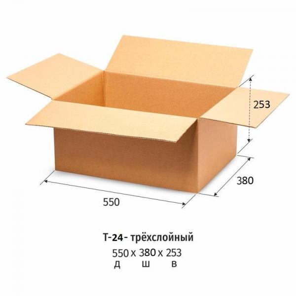 Короб картонный 550x380x253 мм Т-24 10 штук в упаковке. Универсальный четырехклапанный короб для упаковывания. Предназначен для упаковывания, хранения и транспортировки различных грузов с защитой от ударов и влаги. Подходит как для упаковки бытовой химии, так и пищевых продуктов. В пустом виде картонный гофрокороб легко и удобно складывается. Выполнен из трехслойного гофрокартона марки Т-24 бурого цвета.