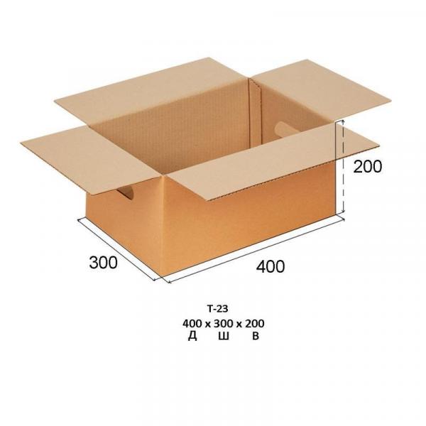 Короб картонный с ручками 400x300x200 мм Т-23 10 штук в упаковке. Универсальный четырехклапанный короб для упаковывания с вырубными ручками. Предназначен для упаковывания, хранения и транспортировки различных грузов с защитой от ударов и влаги. Подходит как для упаковки бытовой химии, так и пищевых продуктов. В пустом виде картонный гофрокороб легко и удобно складывается. Прочный, упругий, обладает хорошими амортизирующими свойствами, отлично переносит штабелирование, высокое сопротивление проколам. Легко складывается. Вырубные ручки позволяют комфортно и безопасно переносить грузы — такая конструкция популярна при организации переездов как квартирных, так и офисных. Выполнен из трехслойного гофрокартона марки Т-23 бурого цвета. Гофрокартон имеет профиль ’В’. Размеры (ДxШxВ) — 400x300x200 мм (24 литра).