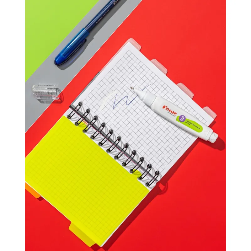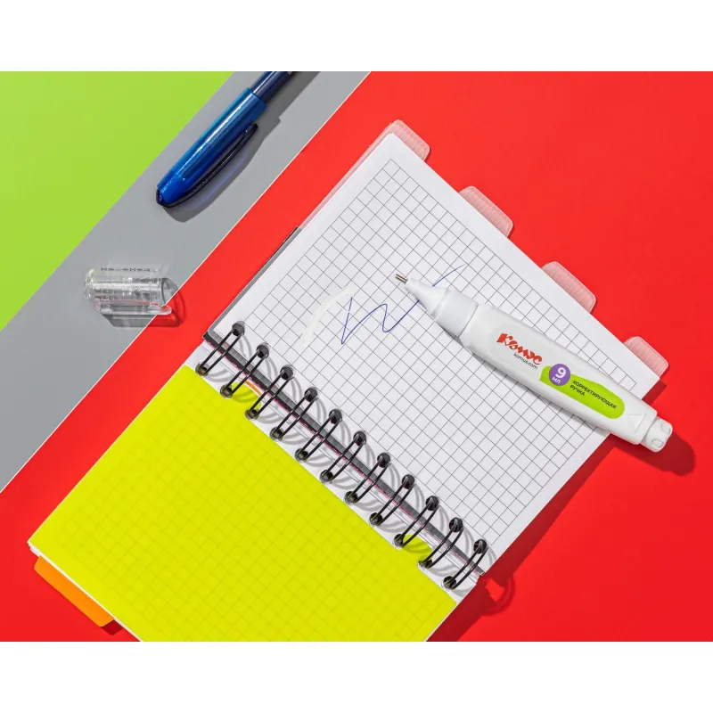 Применяется для точечных и мелких исправлений. Данный вид корректировки особенно удобен, если Вам нужно исправить небольшой объем текста или даже самую маленькую помарку. Идеально подходит для студентов и старших школьников. Подходит для любого типа бумаги и чернил.Используются для исправления рукописного и машинописного текста. Основа быстросохнущая, морозоустойчивая. Металлический шариковый узел. Толщина корректирующей линии: 1.4мм. Перед употреблением хорошо взболтать. Объем - 9 мл.