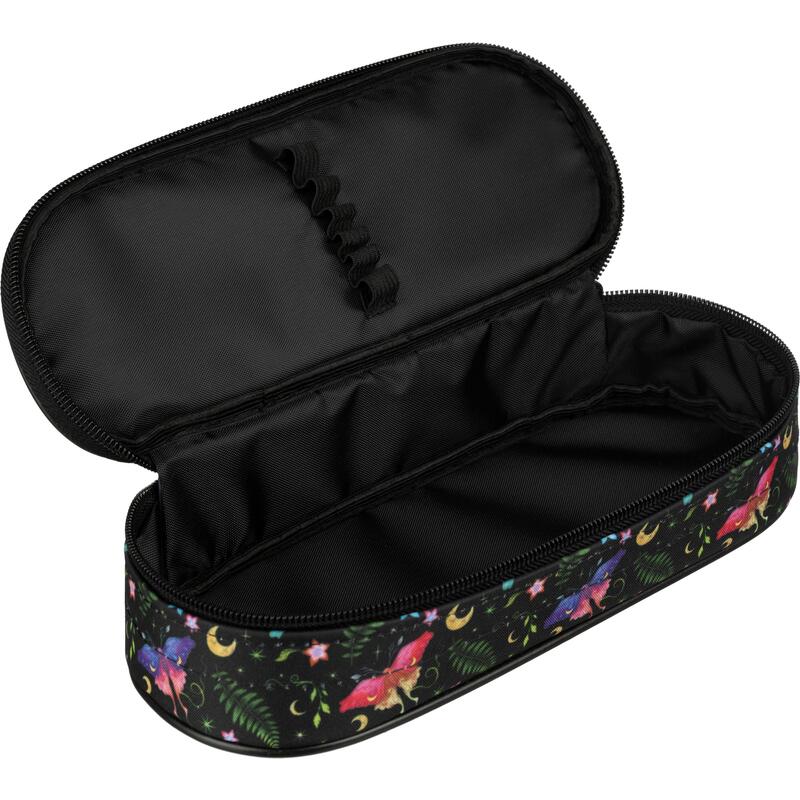 Пенал односекционный Комус Класс Сказочный лес — вместительный контейнер из полиэстера для хранения и транспортировки канцелярских атрибутов. Предназначается для учениц средних классов школы и студенток. Пенал размером 220×90×50 миллиметров сделан в форме футляра, что придает ему особую компактность и удобство в использовании. Дизайн пенала выполнен в черном цвете с изображением волшебного леса. Пенал Комус Класс Сказочный лес — стильный и практичный выбор для учебы. В него с легкостью поместятся и будут надежно храниться все необходимые для обучения инструменты. В товар не входит дополнительное наполнение.В рамках ребрендинга производится перевод данного артикула с ТМ № 1School на ТМ Комус Класс с сохранением всех потребительских характеристик товара. На переходный период допускается поставка данной продукции в двух вариантах дизайна.