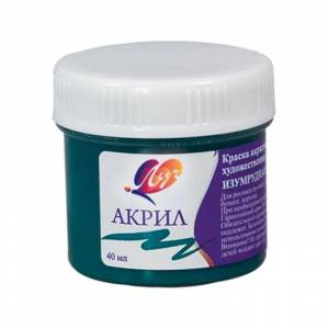 Краска акрил художественная изумрудная, банка 40 мл.