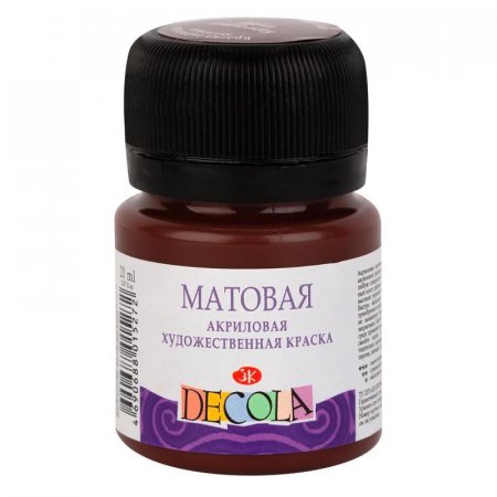 При применении матовых акриловых красок Decola декорируемая (окрашиваемая) поверхность приобретает бархатистый матовый вид.