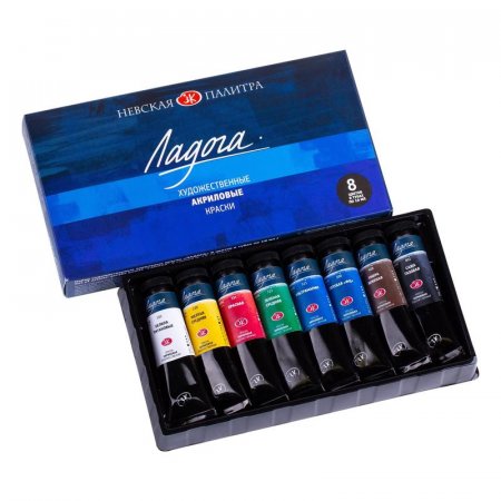 Краски акриловые «Ладога» производятся на основе качественных пигментов акриловой дисперсии. Благодаря легкости в работе, универсальности применения и прекрасной адгезии используются при работе почти на любой поверхности (бумаге, картоне, холсте, дереве, коже и др.). При высыхании образуют матовую эластичную несмываемую пленку.