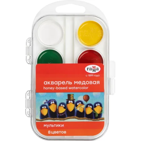 Краски акварельные медовые Гамма Мультики 8 цветов