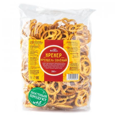 Состав: мука пшеничная хлебопекарная высшего сорта, вода питьевая, масло подсолнечное рафинированное дезодорированное, соль поваренная пищевая, сахар, разрыхлители — карбонат аммония, карбонат натрия.