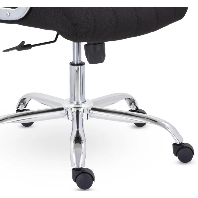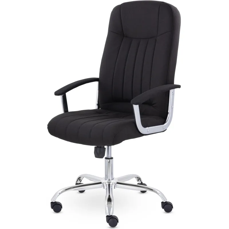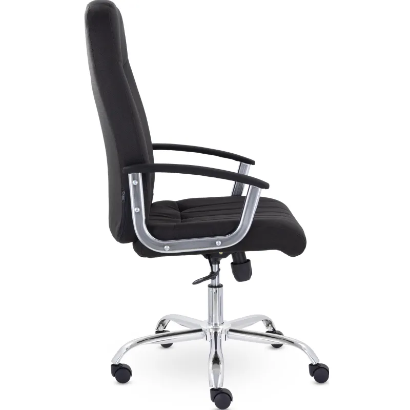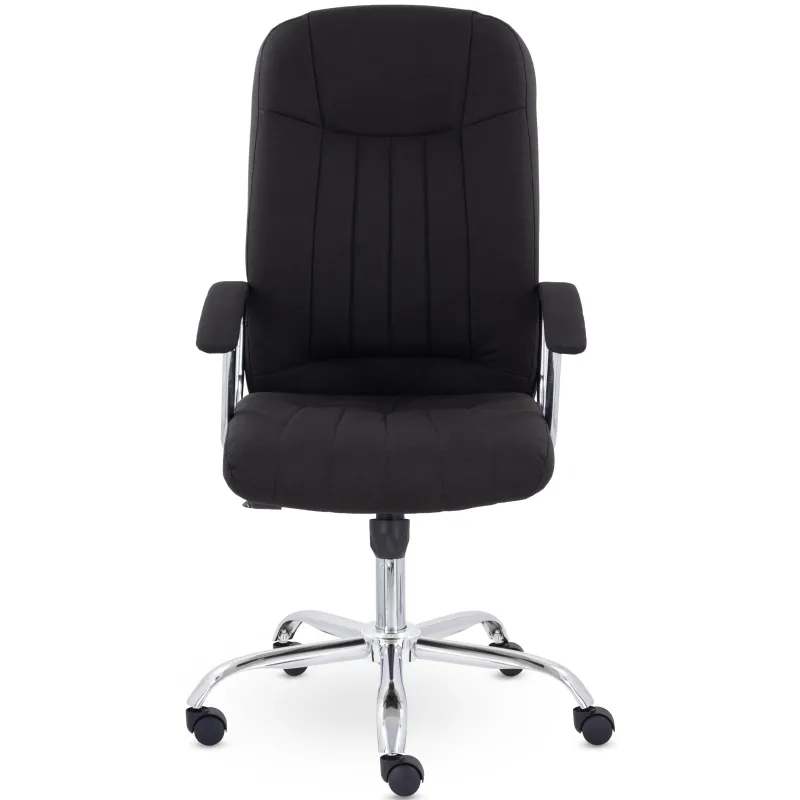 Кресло руководителя с мягкими увеличенными подушками. Широкая эргономичная спинка имеет две горизонтальные прострочки, которые отделяют подголовник от основной части спинки. Благодаря глубокому сидению, в кресле будет удобно человеку среднего и высокого роста. Длинные хромированные подлокотники способствуют комфортной посадке в кресле.