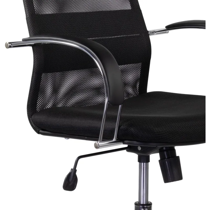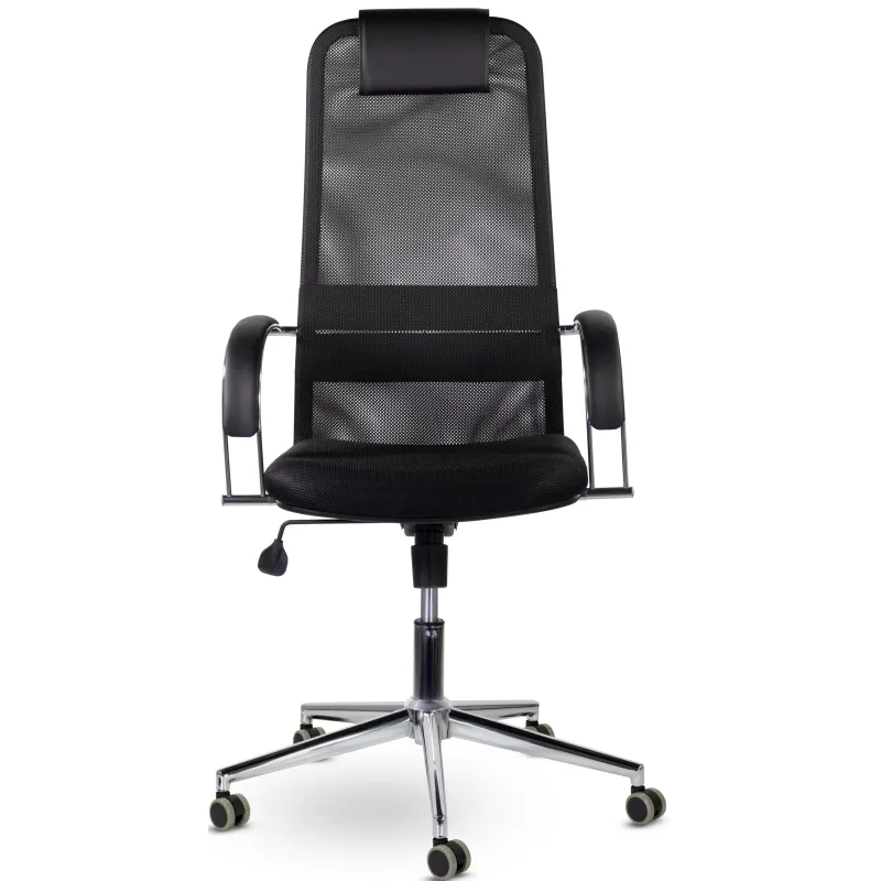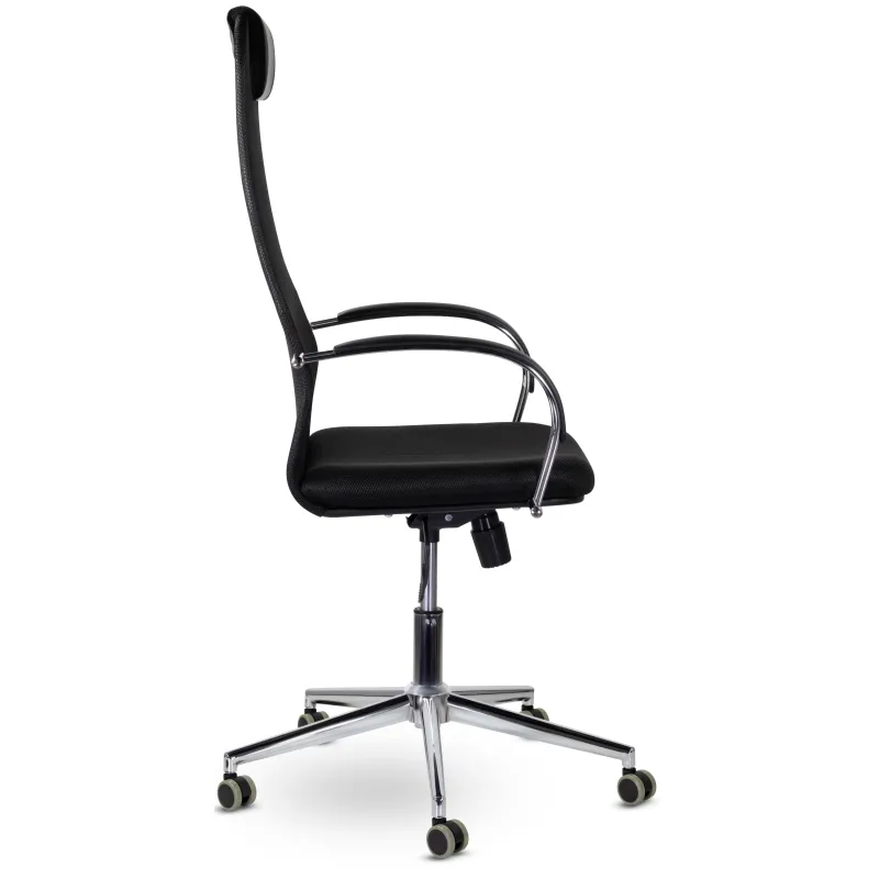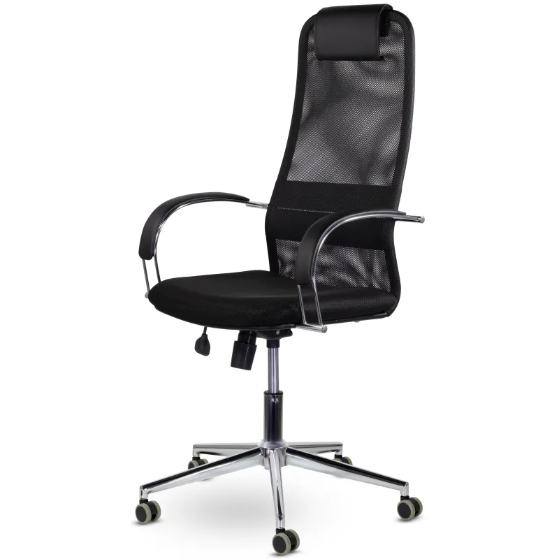 Кресло руководителя. Стильное кресло повышенного комфорта с высокой эргономичной спинкой и мягким подголовником подходит как сотрудникам, так и руководителям. Оно оснащено широкими двусторонними подлокотниками и механизмом качания Топ-Ган. Эта модель прекрасно дополнит интерьер открытого офиса или домашнего кабинета.
