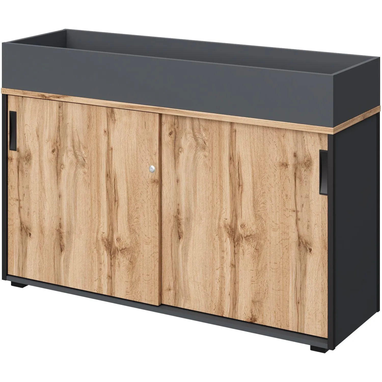 Топ ящик-кашпо для коллекции K-Loft выполнен из плиты ЛДСП (толщина: 16 мм), облицованной кромкой ПВХ (толщина: 1 мм). Ящик может быть использован под размещение искусственных растений для озеленения офисов. Современный стиль лофт. Внимание! Размещение живых растений в кашпо не допускается из-за высокой вероятности попадания влаги на ЛДСП и последующего разбухания плиты!