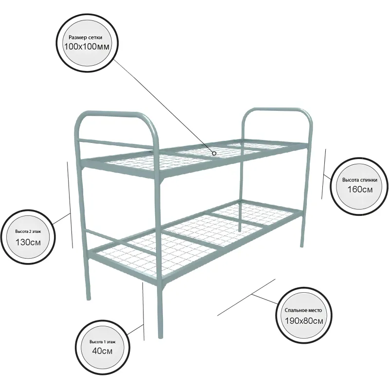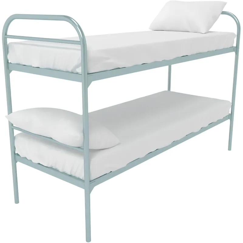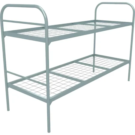 Кровать металлическая двухъярусная, идеальна для вахтовых баз, строительных площадок, армейских подразделений, хостелов, бюджетных гостиниц, общежитий и других мест, где важно комфортное и экономичное размещение. Эта удобная и практичная кровать обеспечит надежное размещение в любых условиях. Прочная конструкция изготовлена из металла с порошковым покрытием для долговечности. Простота монтажа не требует сложной сборки, состоит из двух спинок и основания.