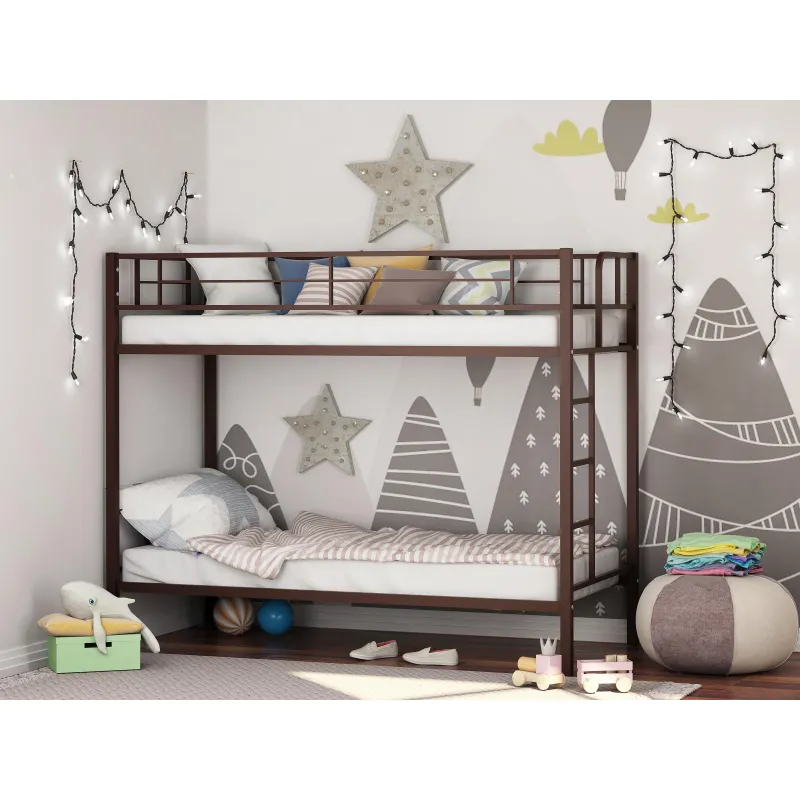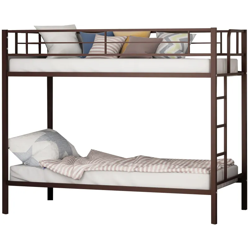 Кровать металлическая Севилья двухъярусная. Каркас кровати выполнен из стали, покрытой порошковой краской. Основание под матрас цельносварное, ламели металлические (профиль 40×20 мм), стойки боковины металлические (профиль 40×40 мм). Размер спальных мест — 900×1900 мм. Максимальная равномерно-распределенная нагрузка на одно спальное место — от 100 до 150 кг. Ножки кровати имеют пластиковые заглушки. Лестница расположена с одной стороны с торца кровати. Рекомендовано использовать подложки под матрасы и крепить кровать к стене.