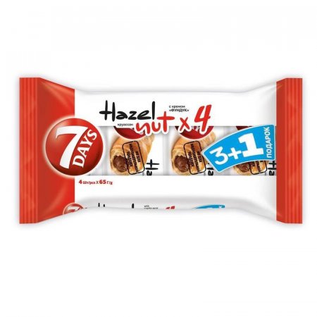Круассан 7 days с кремом Фундук 65 г промоупаковка, 3+1 штука — это упаковка из 4 порций вкусного и питательного перекуса. Сочетание нежного и воздушного теста с шоколадно-ореховой начинкой подарит настоящее наслаждение любителям сладкой выпечки. Ароматный круассан составит прекрасную пару утренней чашке кофе или чая, а также поможет утолить чувство голода в течение всего дня.