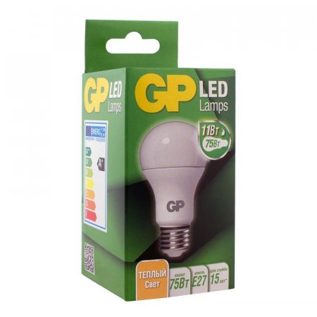 Светодиодная лампа GP — источник основного или локального освещения в помещении. Благодаря мягкому и теплому свечению используется для светильников, ночников, также подходит для декорирования и создания световых зон. Низкое энергопотребление, срок службы и безопасность — главные преимущества светодиодных ламп. Лампа имеет классическую грушевидную форму и подходит к любым осветительным приборам, оснащенным цоколем Е27. Благодаря встроенной защите лампа не чувствительна к перепадам напряжения (рабочий диапазон — 220-240В). Свет теплый, комфортный для глаз, без мерцания. Благодаря низкому уровню энергопотребления светодиодные лампы экономичнее классических ламп накаливания. Так, лампа мощностью 11Вт по уровню свечения эквивалентна обычной лампочке в 75 Вт. Срок службы составляет 15 лет, при среднем использовании прибора по 3 часа в сутки. Использование ламп в домашних условиях соответствует правилам и нормам безопасности. Лампа не перегревается и может быть использована в спальнях и детских комнатах.