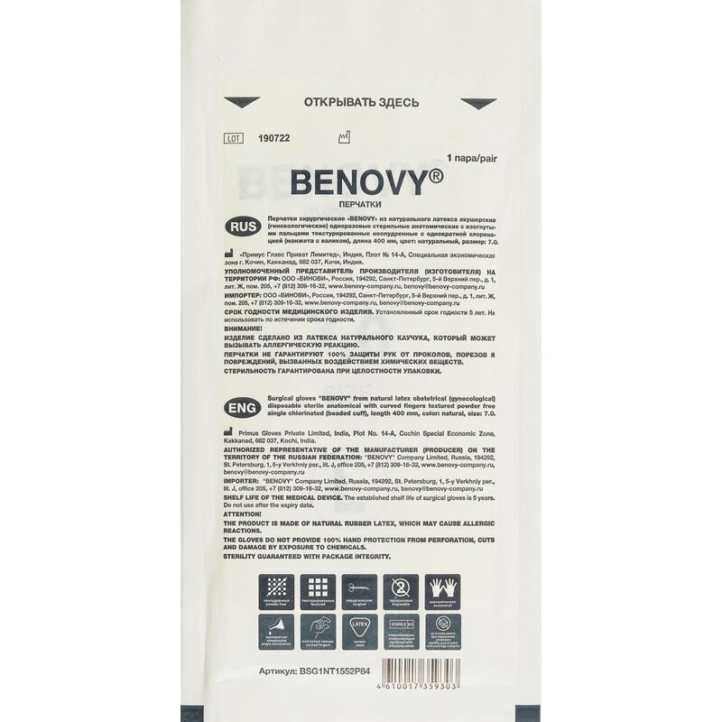 Форма: хирургические перчатки Benovy обладают анатомической формой, благодаря чему нейтрализуется усталость мышц кисти даже после длительной работы.