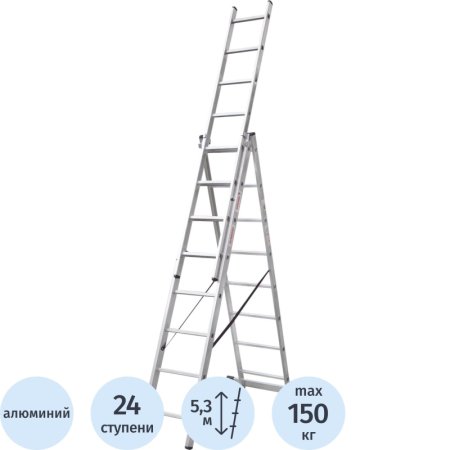 Лестница Новая Высота NV 1230 алюминиевая трёхсекционная 3×8 ступеней.