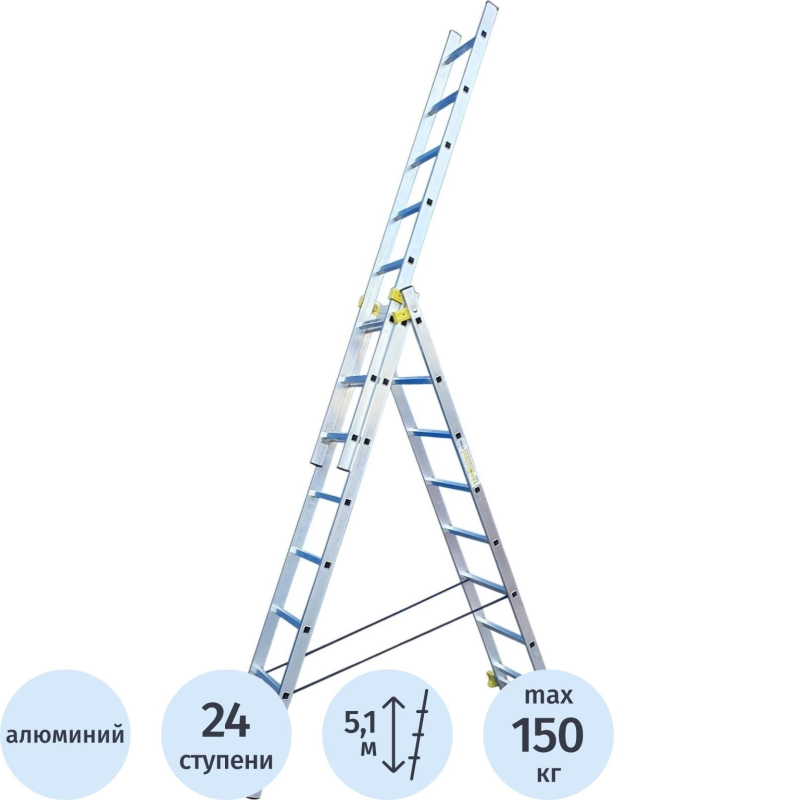 Лестница Tarko алюминиевая трёхсекционная 3×8 ступеней (SKALA 01308е)