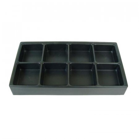 Ускоряют процесс работы с деньгами (сортировка и удобство выдачи). Материал: пластик. Лоток с 8 квадратными углублениями под монеты.
