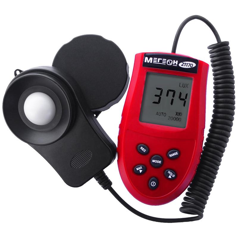 Люксметр с функцией записи Мегеон 21170 — портативный измеритель освещенности Мегеон 21170 с выносным фотодатчиком. Люксметр отличается высокой надежностью и точностью, а также неприхотливостью к условиям эксплуатации. Прибор Мегеон 21170 имеет широкий рабочий диапазон с функцией автоматической подстройки, который существенно упрощает проведение измерений. При необходимости, пользователь может вручную установить необходимый интервал измерений. Быстрый отклик, мгновенный результат измерения. Помимо измерения минимумов и максимумов люксметр обладает очень удобной функцией записи результатов измерений в память прибора. Представленный прибор отлично подойдет для измерения энергии видимого света в различных помещениях и зданиях.