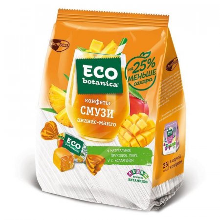 Желейные конфеты смузи Eco-botanica с фруктовым пюре, с пониженным содержанием добавленного сахара и комплексом витаминов для красоты и здоровья. Больше пользы, меньше сахара!
