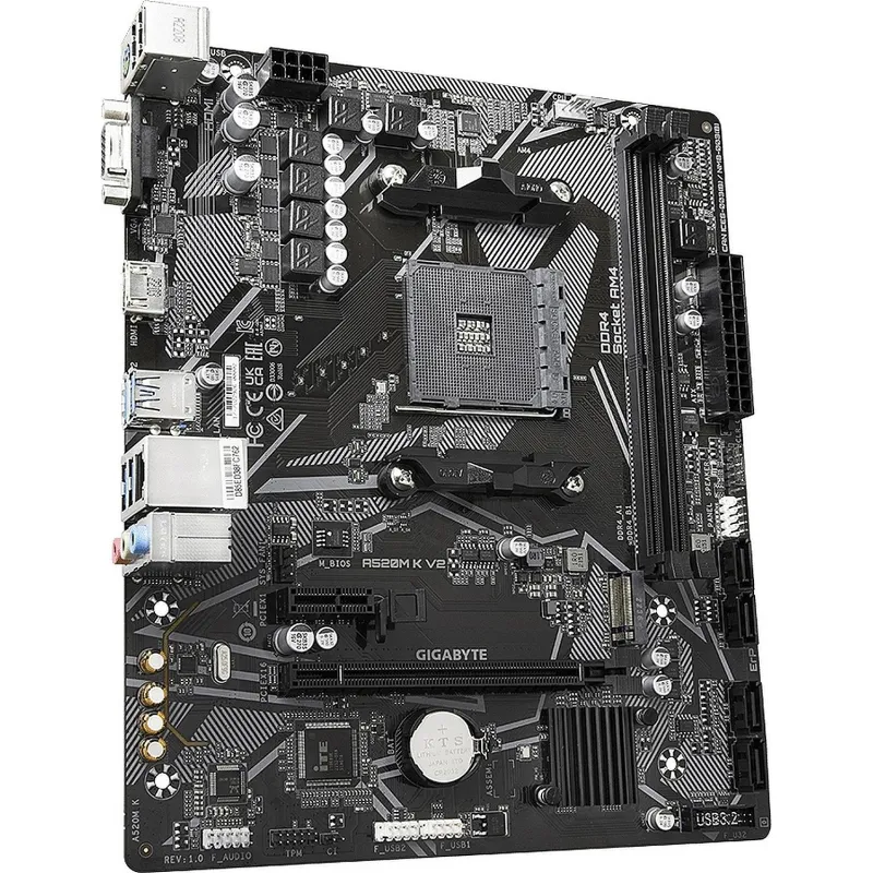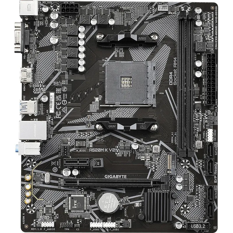 Материнская плата формата mATX предназначена для сборки настольных систем с процессорами на сокете AM4. Она построена на чипсете AMD A520 и поддерживает до 64 ГБ оперативной памяти DDR4, устанавливаемой в два слота DIMM.