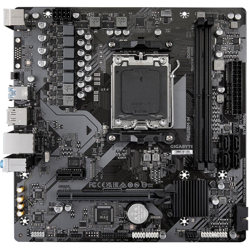 Материнская плата Gigabyte A620M H формата mATX основана на чипсете AMD A620 и предназначена для процессоров с сокетом AM5. Поддержка оперативной памяти DDR5 и возможность установки модулей общим объёмом до 128 ГБ обеспечивают стабильную работу в современных приложениях и системах. Плата оснащена двумя слотами DIMM, одним разъёмом PCI-Express x16 и одним PCI-Express x1, что позволяет подключать видеокарту и дополнительные устройства расширения.