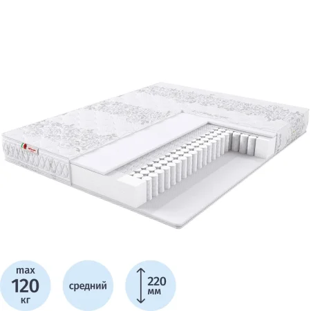 Чехол Extra Premium Classico — мягкий и особенно пышный чехол за счет экологичного наполнителя Skyfiber и анатомической пены Ergoflex Touch в своем составе. Обновленная стежка чехла в виде пчелиных сот в очень оригинальном исполнении, подарила матрасом отличительную особенность от других линеек и добавила матрасу невероятный привлекательный объем и комфорт. Натуральное трикотажное полотно в классическом белоснежном трикотаже подчеркивает узор стежки, наделяя матрас не только визуальной привлекательностью, но и абсолютным удобством. Active Space — это пружинный блок Magic Zone, армированный по системе Ecobond без использования устаревших войлочных материалов и высокоэластичная пена Ergoflex по периметру матраса, которая защищает его от провисания и усиливает жесткость края. Magic Zone — инновационные пружинные блоки c уникальной зональностью. Имеют 7 зон поддержки. В областях максимальной нагрузки пружины собраны в шахматном порядке. Благодаря этому матрасы имеют усиленный ортопедический эффект. Они более комфортны и эргономичны. На спальное место приходится 550 пружин. Ergoflex — высокоэластичная пена на водной основе, имеет среднюю жесткость, не деформируется со временем. Обеспечивает 100% циркуляцию воздуха за счет открытой молекулярной структуры, позволяет поддерживать идеальную температуру спального места, отводить лишнюю влагу и запахи.