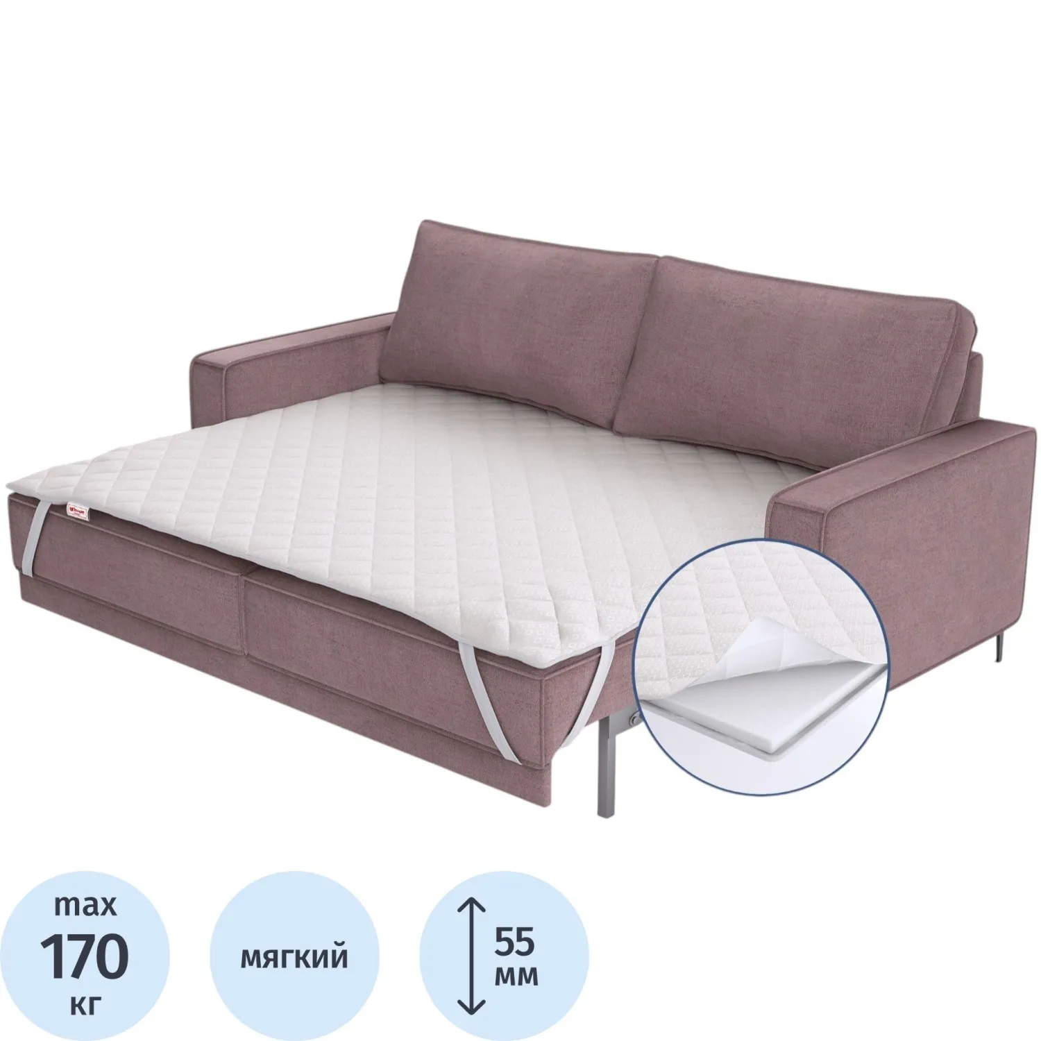 Матрас-топпер поможет выровнять спальное место на диване или изменить жесткость основного матраса. Создан на базе блока высокоэластичной пены на водной основе Ergoflex. Этот материал обладает массой достоинств. Его структура состоит из небольших открытых ячеек, что позволяет равномерно распределять нагрузку по всей поверхности матраса и гарантировать правильную ортопедическую поддержку позвоночника. Чехол матраса Premium Eco выполнен из крепкого и практичного синтетического жаккарда, простеганного на Skyfiber (файбер) — 100 грамм на квадратный метр. Файбер — это экологически чистый и нетоксичный материал, который не впитывает влагу и запахи. Он обеспечивает высокую теплоизоляцию и предотвращает слеживание при длительной эксплуатации.